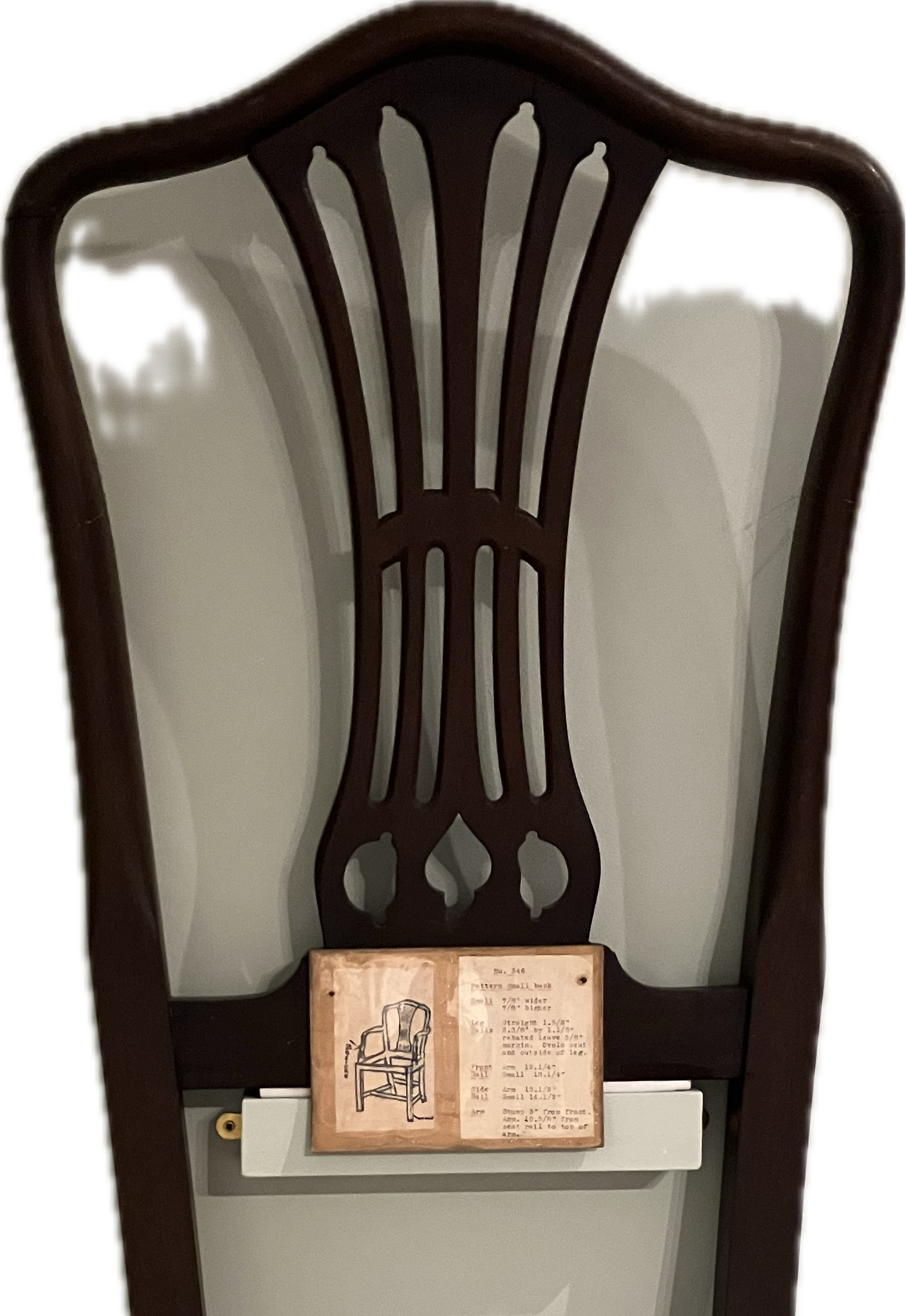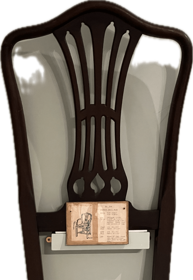 This chair template can be seen in The Art of the Chair Exhibition at Wycombe Museum until 2 February 2025. The exhibition includes other chair designs from the 19th and 20th centuries.