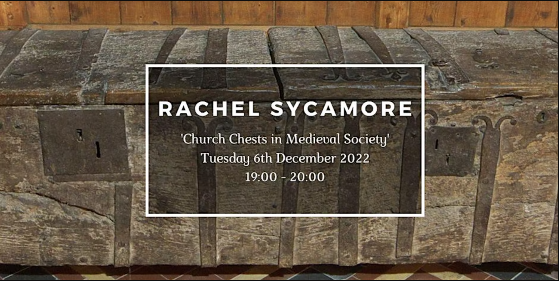 Chests were amongst the most important and prevalent form of medieval furniture, with many surviving in parish churches today. Originally, they provided secure containers in which to store valuable church accoutrements. As part of her master’s degree, Rachel Sycamore recorded and photographed over 200 church chests throughout Herefordshire and Worcestershire. Her talk will explain the different types of church chest and discuss their construction, uses, ornament and care. She will reveal why they are significant archaeological artefacts and what they meant to the people who used and depended on them. She will also recount some of the extraordinary and amusing tales of their survival and her quests to record examples in unlikely places. As a furniture restorer and conservator, Rachel hopes to raise awareness of the importance and significance of church chests and ensure that they are cared for in a way that will preserve them for future generations.