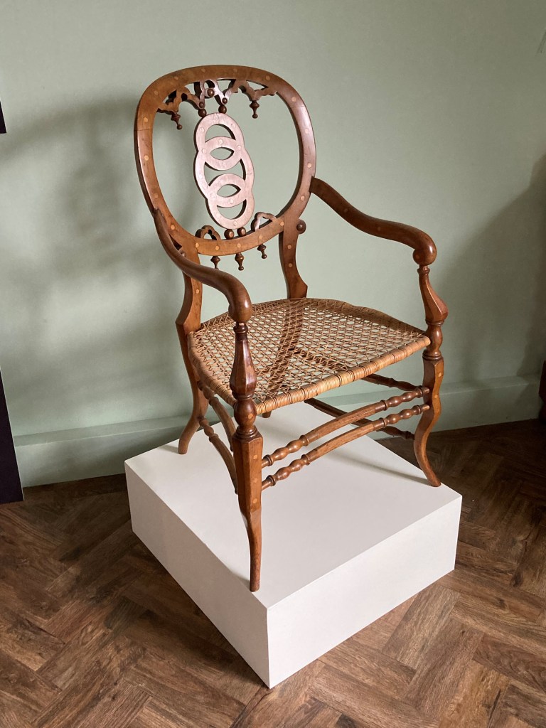 This chair can be seen in Wycombe Museum’s exhibition, Hidden Hands, Women and Work in the Chilterns, 7 March – 10 September 2023. The exhibition explores the Chilterns crafts of chair seat caning and matting, lace making, straw plaiting and tambour beading. The exhibition is in collaboration with the Woodlanders’ Lives and Landscapes community history project. Entry to the exhibition and the museum are free.